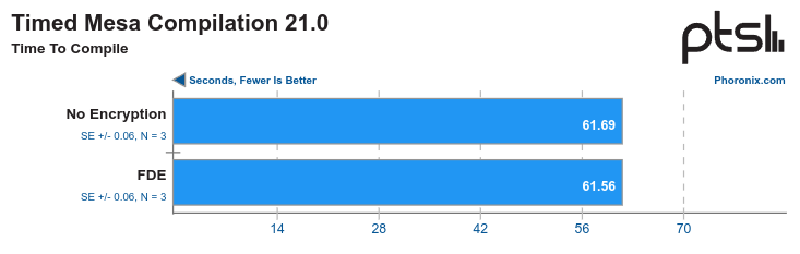 La disparidad es prácticamente insignificante al compilar tanto Linux 6.1 como Mesa 21.