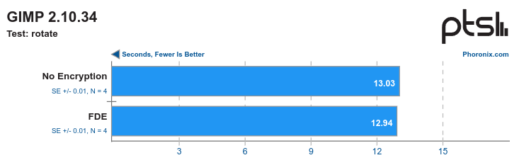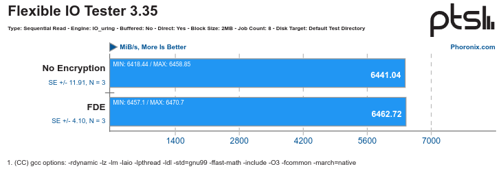 Phoronix ha utilizado SQLite 3.41.2 como la próxima opción para evaluar el rendimiento. En este aspecto, las variaciones no son significativas, por lo tanto, entre todas las pruebas efectuadas, optaremos por mantener la que ha favorecido más a la instalación que no utilizó el cifrado de disco.